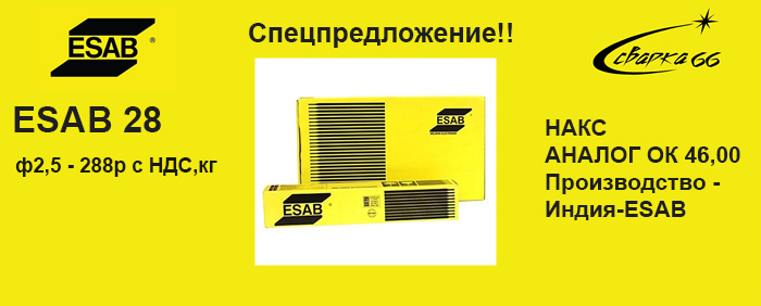 Принимаем заказы на сварочные электроды ESAB 28 производства ЭСАБ (Индия), аналог ОК 46. Доступны ...